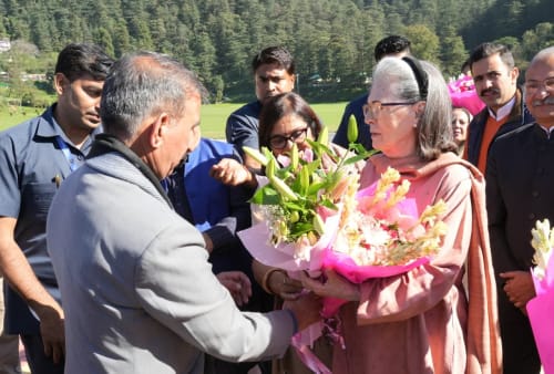 Himachal Pradesh CM, Shri Sukhvinder Singh Sukhu & Senior Congress leaders and workers accorded a warm welcome to CPP Chairperson Smt. Sonia Gandhi on