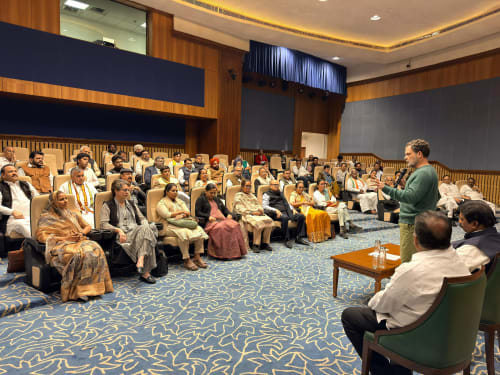 LoP (LS), Shri Rahul Gandhi, addressed Lok Sabha MPs at Parliament House Annexe Extension