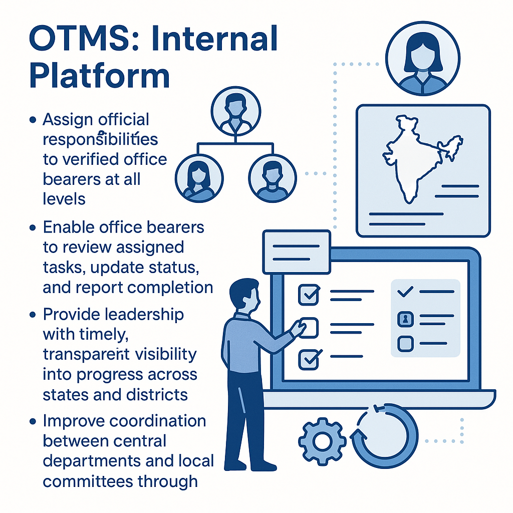 The Indian National Congress continues to modernize operations with secure, responsible technology. The OTMS enhances efficiency, transparency, and accountability—empowering every Congress worker to serve the organization and the people more effectively.